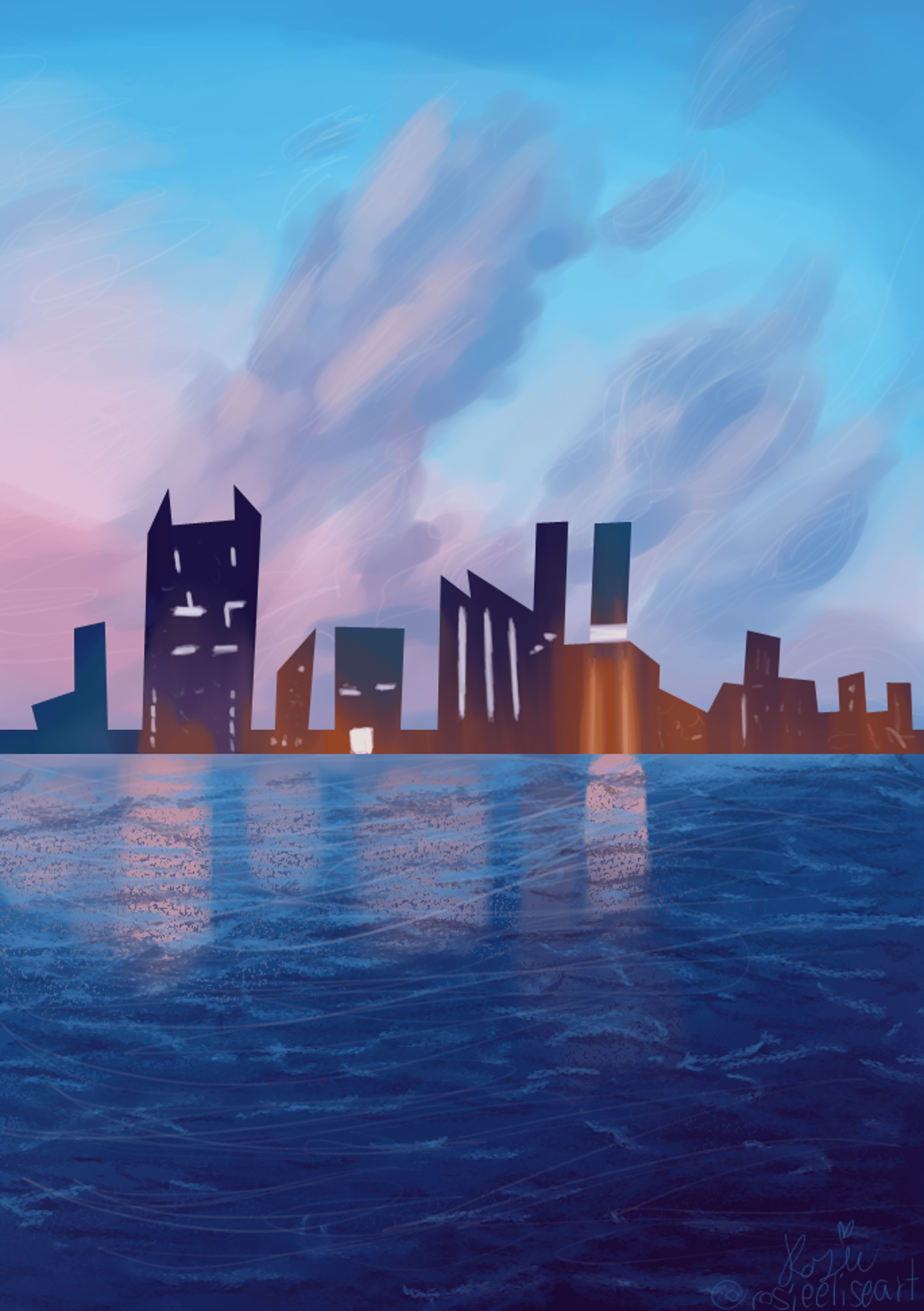 Sometimes a piece doesn't feel complete until I add a background, sometimes that's all the piece is. Here you'll find my many landscape illustrations, either inspired by my local Florida sunset, or locations dreamed up entirely by my imagination (and a few references here and there).